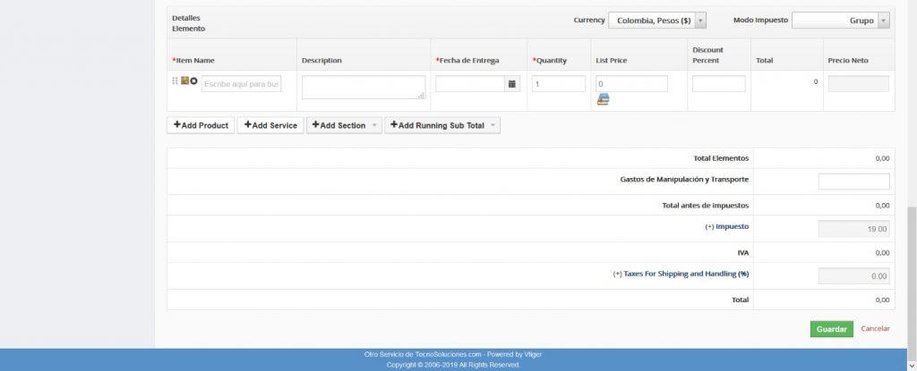 Una cotización se basa en su catálogo de productos y/o servicios y las listas de precios apropiadas, según lo descrito en la sección “Productos Relacionados“. Usted debe haber creado sus productos y servicios, así como sus precios en el sistema TecnoCRM antes de que pueda crear una cotización.