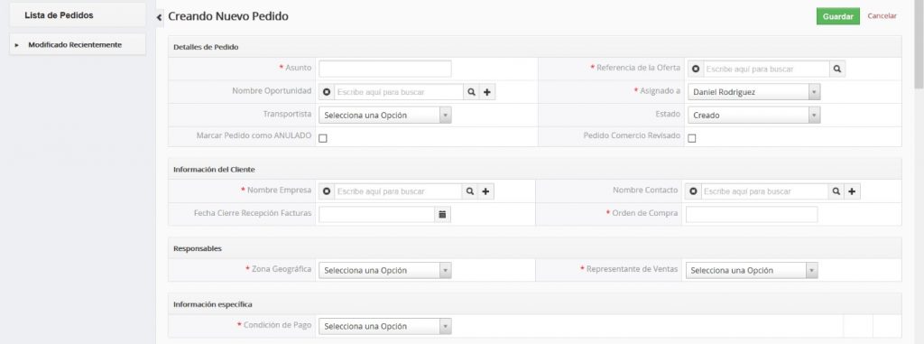Asignado a: Seleccione el usuario de TecnoCRM que es responsable de este pedido.