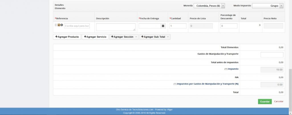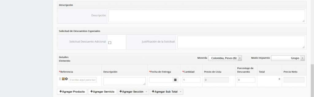 Comisión de Ventas: Puede inscribir una comisión de ventas aquí