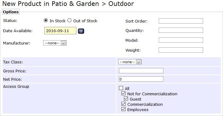 Acceso de Grupos: seleccionar el grupo de usuarios / clientes tendrán acceso a este nuevo producto: Invitado (Visitante web en general), Usuarios, Empleados, Vendedores, etc.