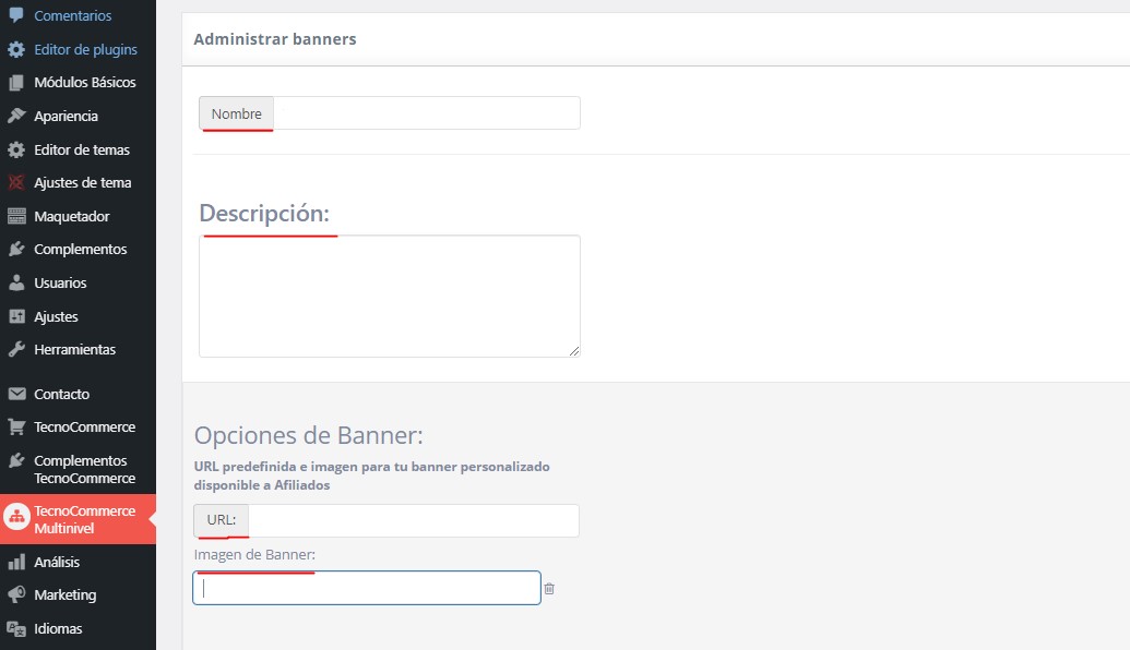 Para ayudar a sus afiliados a promocionar su sitio web, puede proporcionarles banners predefinidos desde la página de la cuenta.