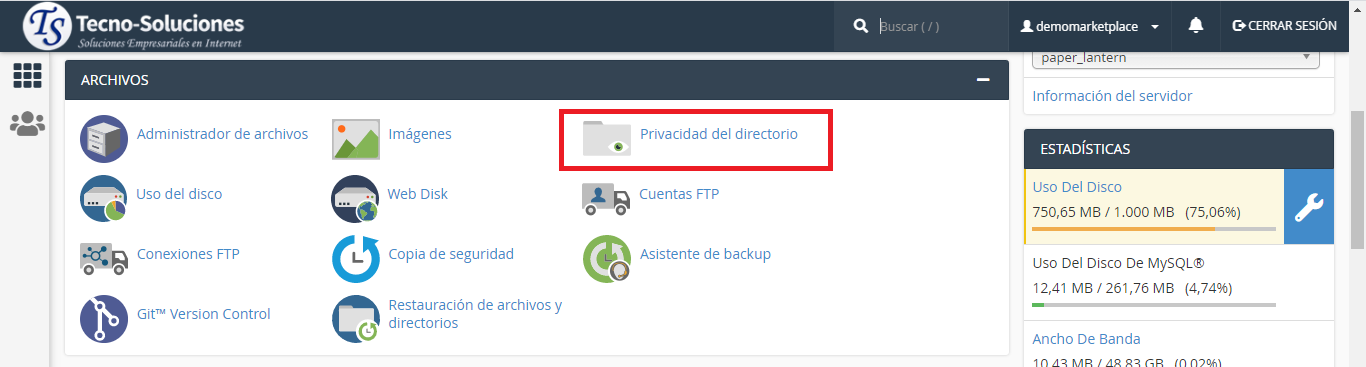 Esta interfaz le permite proteger directorios específicos en los archivos de su cuenta de cPanel. Después de habilitar esta función para un directorio, cuando los usuarios intentan ver ese directorio a través de un sitio web, el sistema les solicita que inicien sesión.