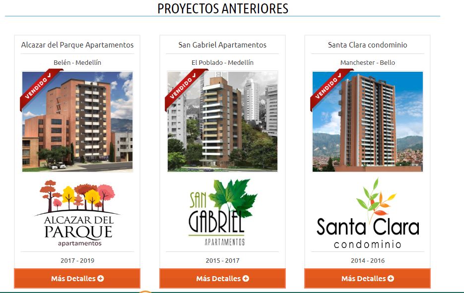 En esta página el usuario encontrará una lista de los proyectos que ya han sido vendidos, y al hacer clic en cualquiera de ellos, encontrará una descripción similar a la de un proyecto en venta. Esta información es muy importante, pues ayuda a que el comprador se sienta confianza con la experiencia de la constructora.