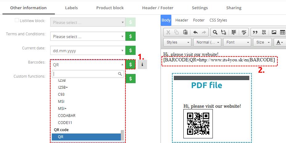 - En la parte insertada [BARCODE | QR = YOURCODE | BARCODE] reemplace “YOURCODE” con el valor de su código QR .