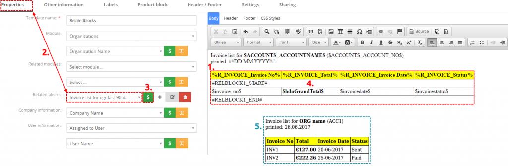 Si se crea el bloque relacionado, puede continuar editando su plantilla. Para insertar el bloque relacionado, ejecute las siguientes acciones: