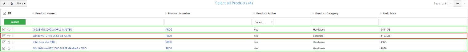 En la imagen a continuación, puede ver registros donde 1 registro tiene una categoría de Software y 3 registros con la categoría de Hardware: