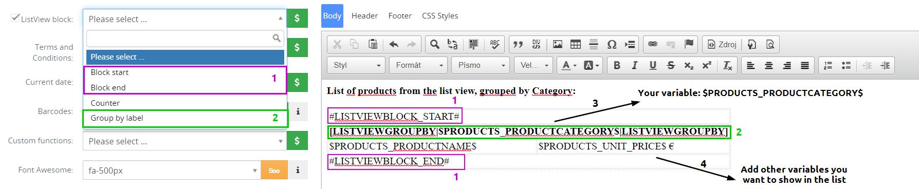 - Reemplace el texto “Grupo por Etiqueta” con su variable, en nuestro caso es: $PRODUCTS_PRODUCTCATEGORY$