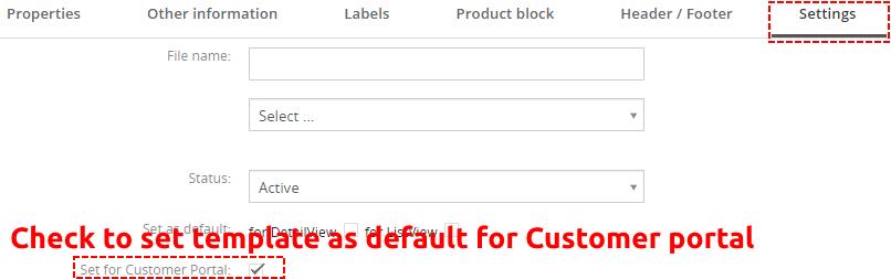 La plantilla del Creador de PDF se puede configurar como plantilla predeterminada para el Portal de clientes. Para configurarlo, vaya a la pestaña Configurar y marque la casilla de verificación “Establecer para el portal del cliente”. Tenga en cuenta que esta configuración está disponible solo para módulos / plantillas Factura y Cotizaciones.