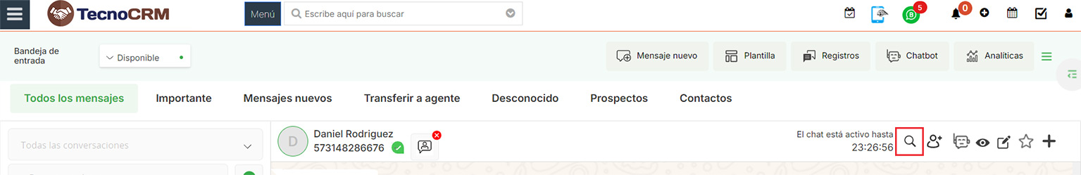 Esta función permite a los usuarios buscar palabras clave específicas dentro de los mensajes de chat para localizar rápidamente conversaciones relevantes.