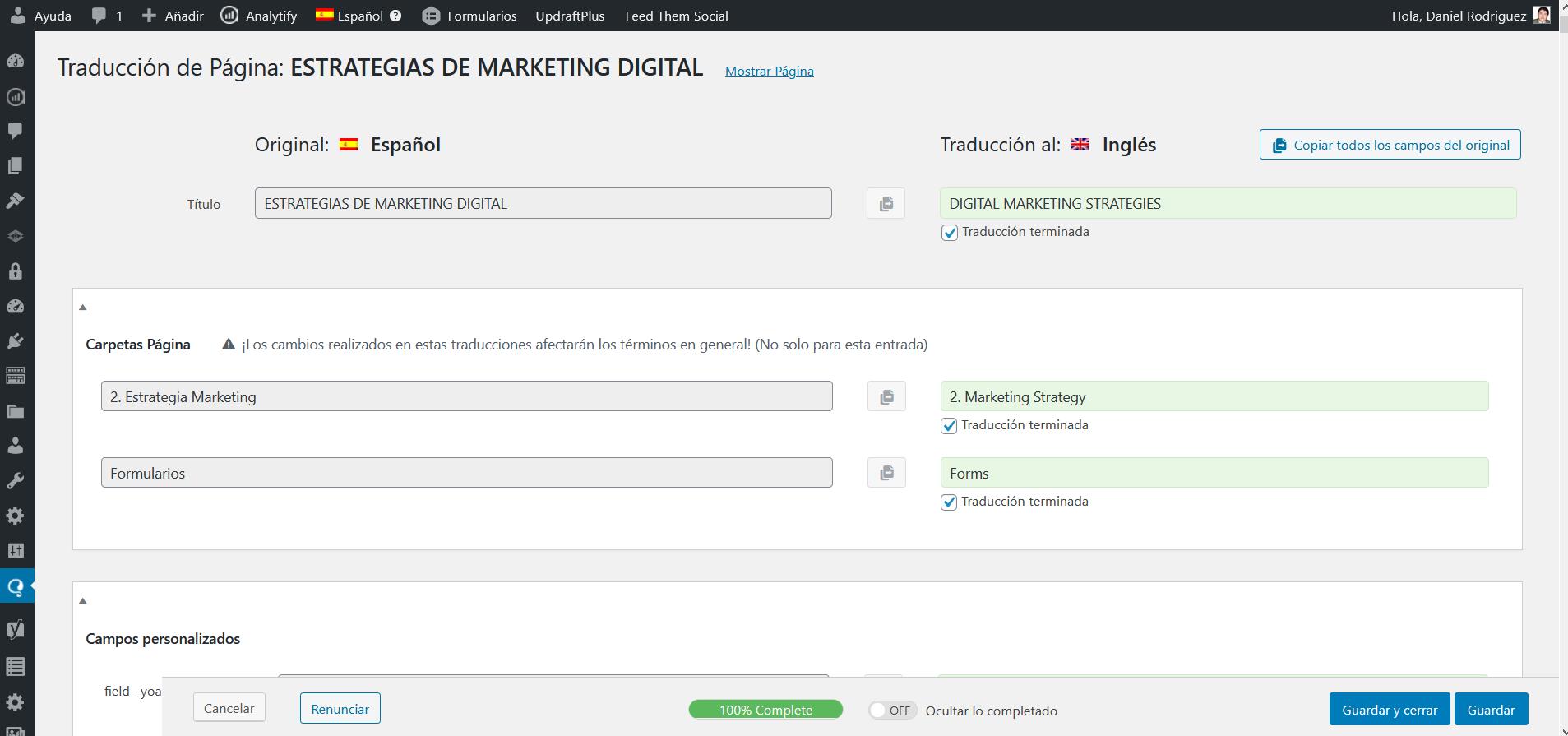 Si usted está traduciendo por su cuenta o con sus usuarios locales, puede utilizar el Editor de traducción avanzado o el Editor de traducción clásico de WPML. Le sugerimos utilizar el Editor de traducción avanzado porque le permite traducir contenido de manera más rápida utilizando las funciones de traducción automática, memoria de traducción y mucho más.