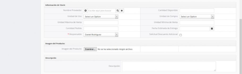 Responsable: Debe asignar a una persona responsable para mantener el inventario. El sistema TecnoCRM informará a esta persona automáticamente si las mercancías son vendidas.