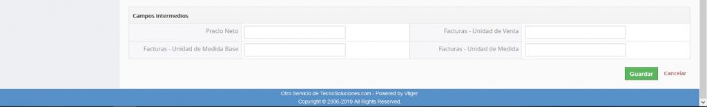 Cantidad de Reinventario: Aquí puede introducir la cantidad mínima de mercancías que quiere mantener en el inventario. Si el sistema TecnoCRM detecta que durante el proceso de ventas la cantidad real en inventario esta cerca de la cantidad mínima, esto será notificado a la persona encargada del inventario por email.
