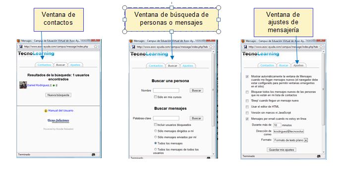 aparece una ventana de búsqueda y edición (ver figura 11), en la cual aparecen tres pestañas: Contactos, Buscar,Ajustes.