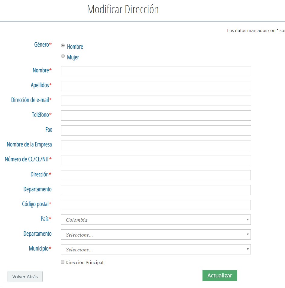 Cabe destacar, que la dirección que se determine como Principal es la que el sistema seleccionará por defecto para el envío y para la facturación de los pedidos, también se utilizará para calcular los impuestos que le corresponden, al menos que se indique lo contrario en el momento de realizar una compra.