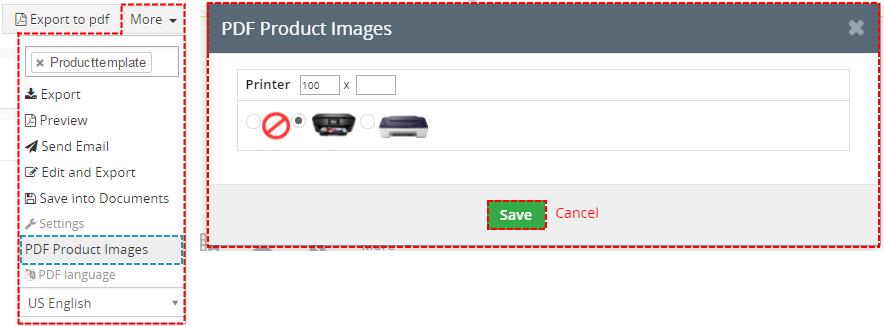 La opción Imágenes de productos PDF es útil en caso de que esté utilizando más imágenes para un producto y le gustaría seleccionar qué imagen debe usarse dentro de sus archivos PDF exportados. Supongamos que se usa la variable $PRODUCTS_IMAGENAME$ en la plantilla. Para seleccionar qué imagen se utilizará, ejecute los siguientes pasos: