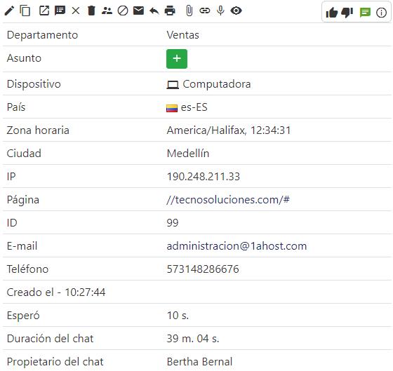 El Operador puede hacer clic en de cualquiera de los chats listados y se abre la ventana de Interacción con el Visitante con todas sus funcionalidades.