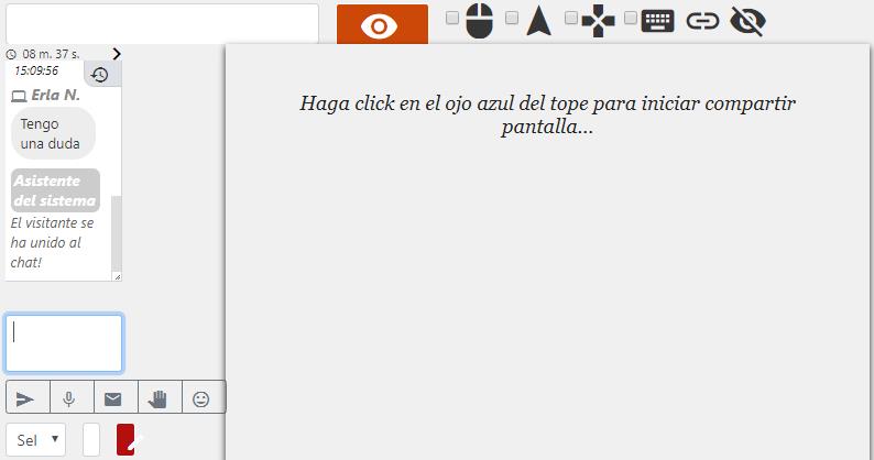 Al hacer clic sobre este ícono se abre un completo ambiente que le permite al Operador navegar en el computador del Visitante compartiendo éste su pantalla.