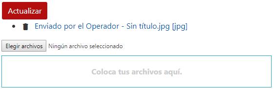 - Archivos: Al hacer clic en (ícono en la parte superior derecha), el Operador puede enviar archivos durante la conversación a ser descargados por el Visitante. Su funcionamiento es similar a lo ya explicado.