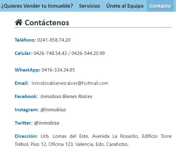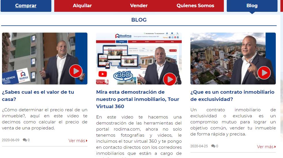 El visitante tendrá la opción acceder a la información de contacto de la Inmobiliaria o el Blog.