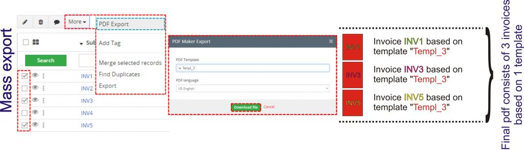 Si combina la exportación masiva y la combinación de plantillas, obtendrá el documento PDF final como se muestra en la siguiente imagen:
