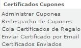 - Reporte de Certificados / Redespacho de Cupones: Lista todos los certificados emitidos e indica si han sido habilitados.