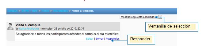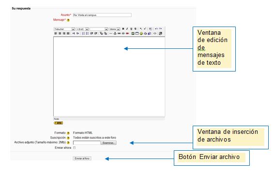 - Y la palabra Responder; al hacer clic sobre ella aparecerá una ventana HTML de edición de mensajes (fig.17), en la cual el usuario podrá escribir mensajes y subir archivos o documentos (siguiendo directrices de subir imágenes en Edición de perfil) para luego ser enviados al contacto.