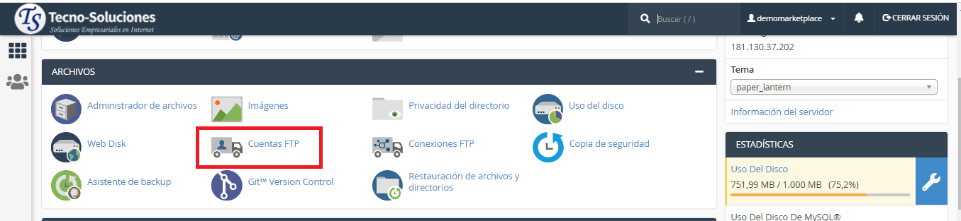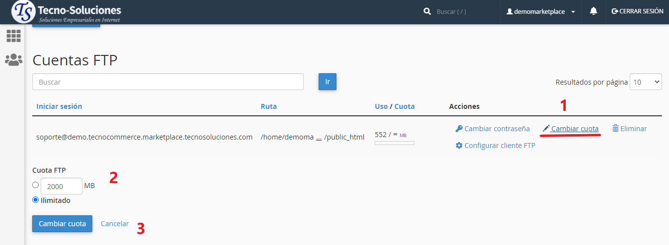 Para cambiar la cuota de una cuenta FTP, realice los siguientes pasos: