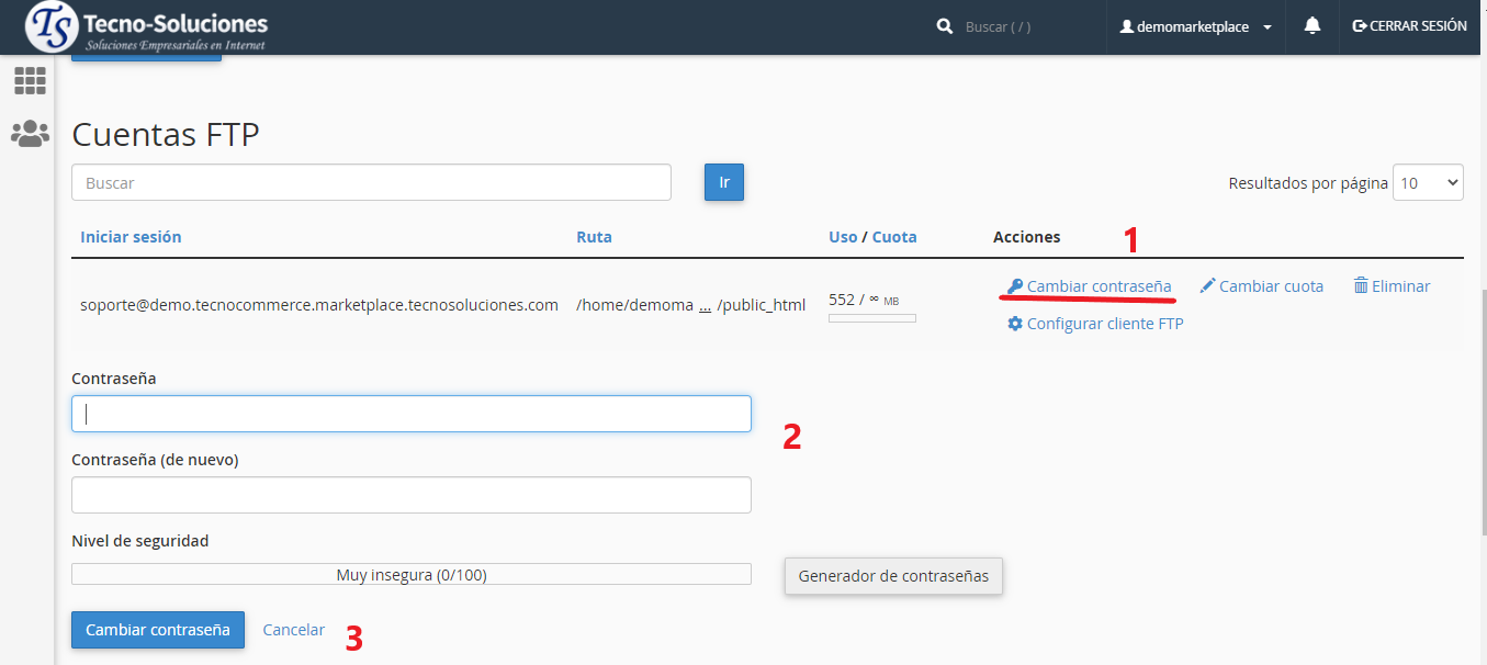 Para cambiar la contraseña de una cuenta FTP, realice los siguientes pasos: