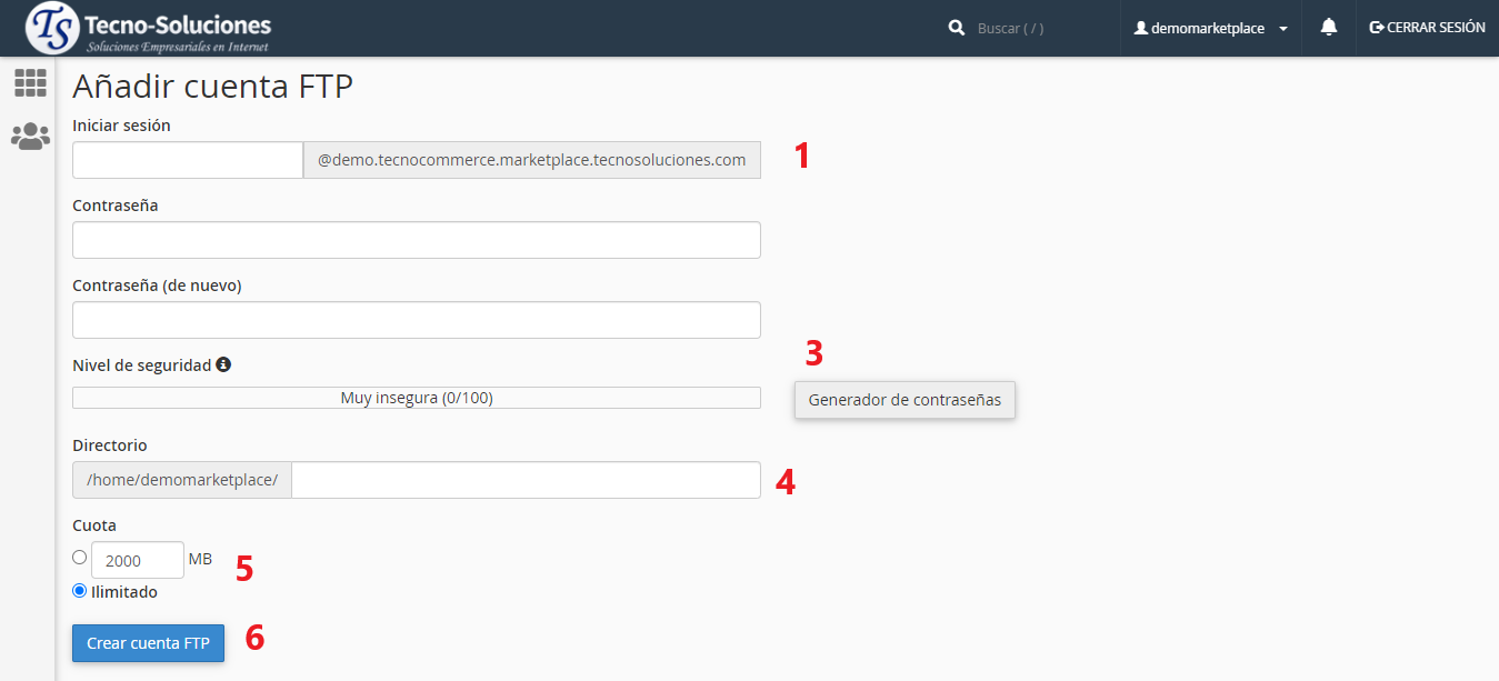 Para crear una cuenta FTP, realice los siguientes pasos: