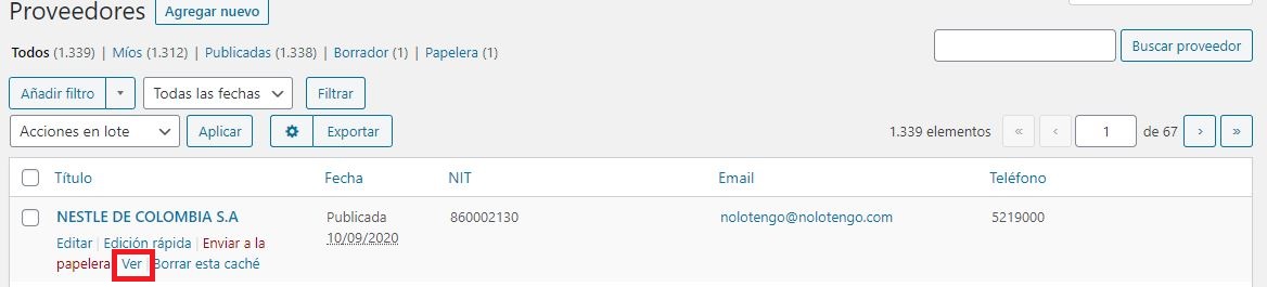 Esta opción nos permite ver al proveedor a nivel web. Sin embargo, corresponde a cada modulo y su configuración mostrar la información al público. Para este caso solamente se puede observar el título del proveedor.