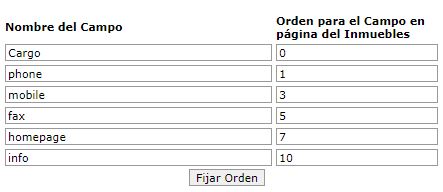 - Orden de Campos: Permite fijar un orden pre-establecido de los campos adicionales creados según el Nombre clave del Campo y el Número de Orden de cada uno.