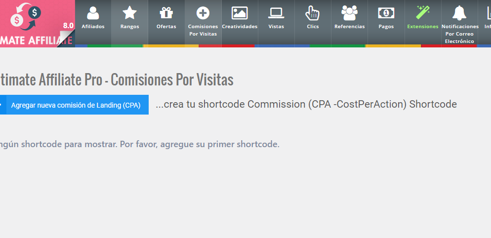 Puede crear una comisión por vista que puede adjuntar a cualquier página exitosa (p. Ej., Página de registro de agradecimiento). Cuando un usuario llega a esta página, el afiliado recibirá una determinada comisión basada en la referencia generada.