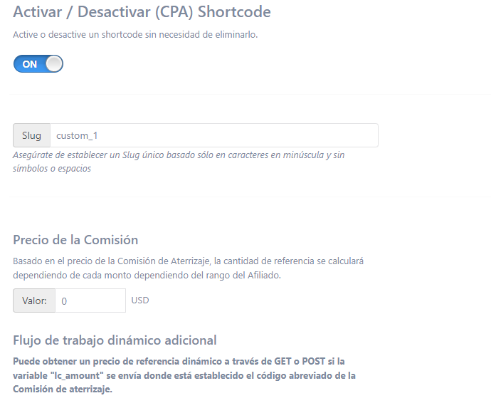 Puede activarlo o desactivarlo sin necesidad de eliminarlo. También debe proporcionar una babosa única para su comisión de aterrizaje. A continuación, deberá ingresar un precio de comisión de aterrizaje en función del cual se calculará la cantidad de referencia en función de la cantidad de rango de afiliado.