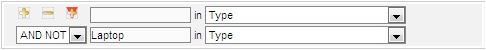 Tipo = vacío (para seleccionar todo) Y NO Tipo =Laptop