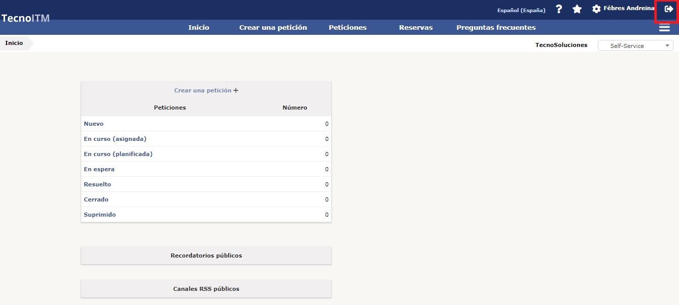 Para desconectarse, haga clic en el enlace Desconexión ubicado en la parte superior derecha de la pantalla