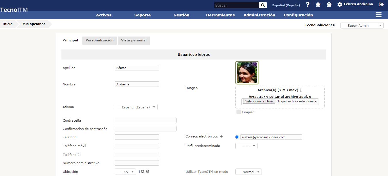Nota: Algunos campos no pueden modificarse si provienen de un directorio LDAP.