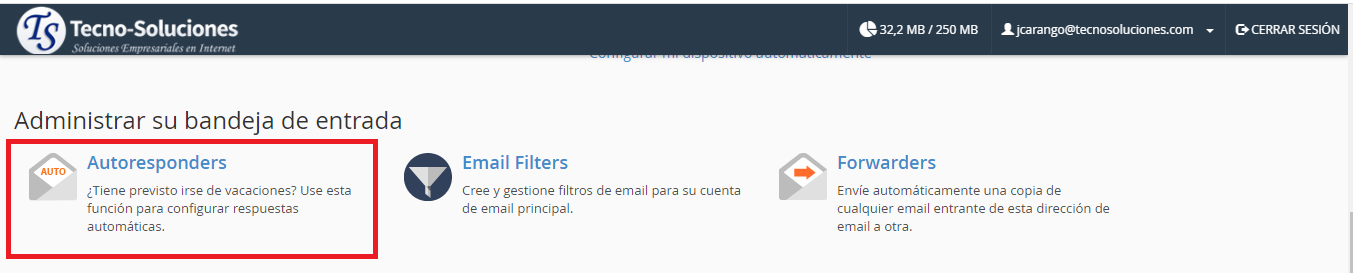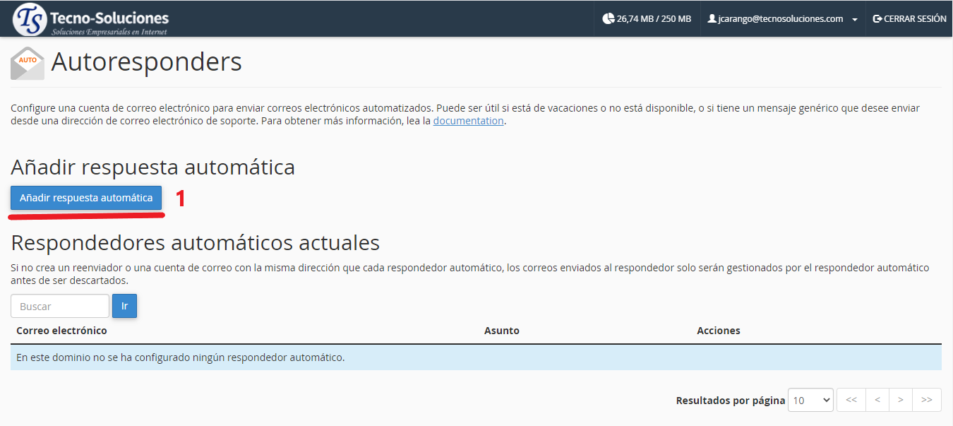 - Haga clic en Agregar Autorespondedor . Aparecerá una nueva interfaz.