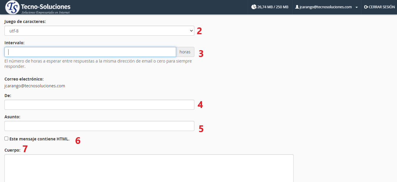 3. Ingrese el intervalo, en horas, para esperar entre respuestas a la misma dirección de correo electrónico.