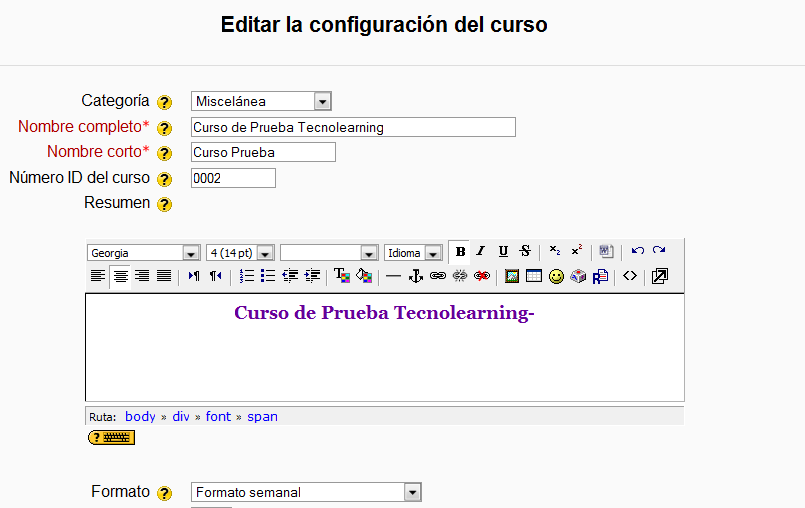 Como profesor podremos configurar muchos vez parámetros que controlan como se muestra la interfaz visual del curso a los estudiantes y como funcionaran los módulos didácticos que vayamos añadiendo al curso.