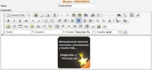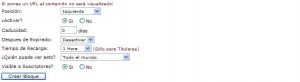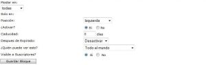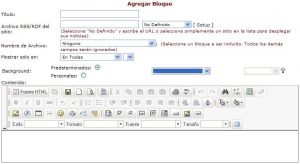 Para Agregar un Bloque solo se debe completar un formulario destinado para tal fin. Para cada bloque es posible definir: Título, archivo, contenido, posición, estado, caducidad, recarga, nivel de usuarios, visibilidad para suscriptores, idioma.