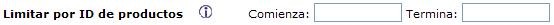 - Limitar por ID de productos. Usted puede utilizar la identificación de los productos para limitar su archivo de la exportación, estableciendo un rango (comienzo y termina). Si no se introducen ID´s de Productos se exportarán todos los productos; si se coloca el ID en “Comienza” y no se coloca nada en “Termina”, se exportarán los productos desde el inicio indicado hasta el final total; por el contrario, si no se coloca el ID en “Comienza” y si se coloca en “Termina” se exportarán los productos desde el comienzo de la base de datos hasta el ID final indicado; y si se colocan los ID de inicio y fin entonces eso es el rango que se exporta.