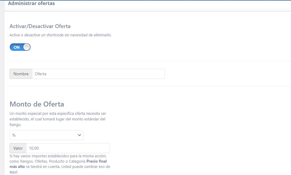 Puede crear ofertas especiales para ciertos productos, estas ofertas anularán la cantidad de rango de sus afiliados. Esto significa que a través de una oferta, sus afiliados pueden ganar más o menos que su monto predeterminado en función de cómo configure la oferta.