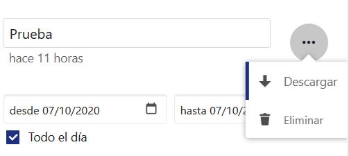 Si abre la vista de la barra lateral y hace clic en el menú de tres puntos junto al nombre del evento, tiene la opción de exportar el evento como un archivo .ics o eliminar el evento de su calendario.
