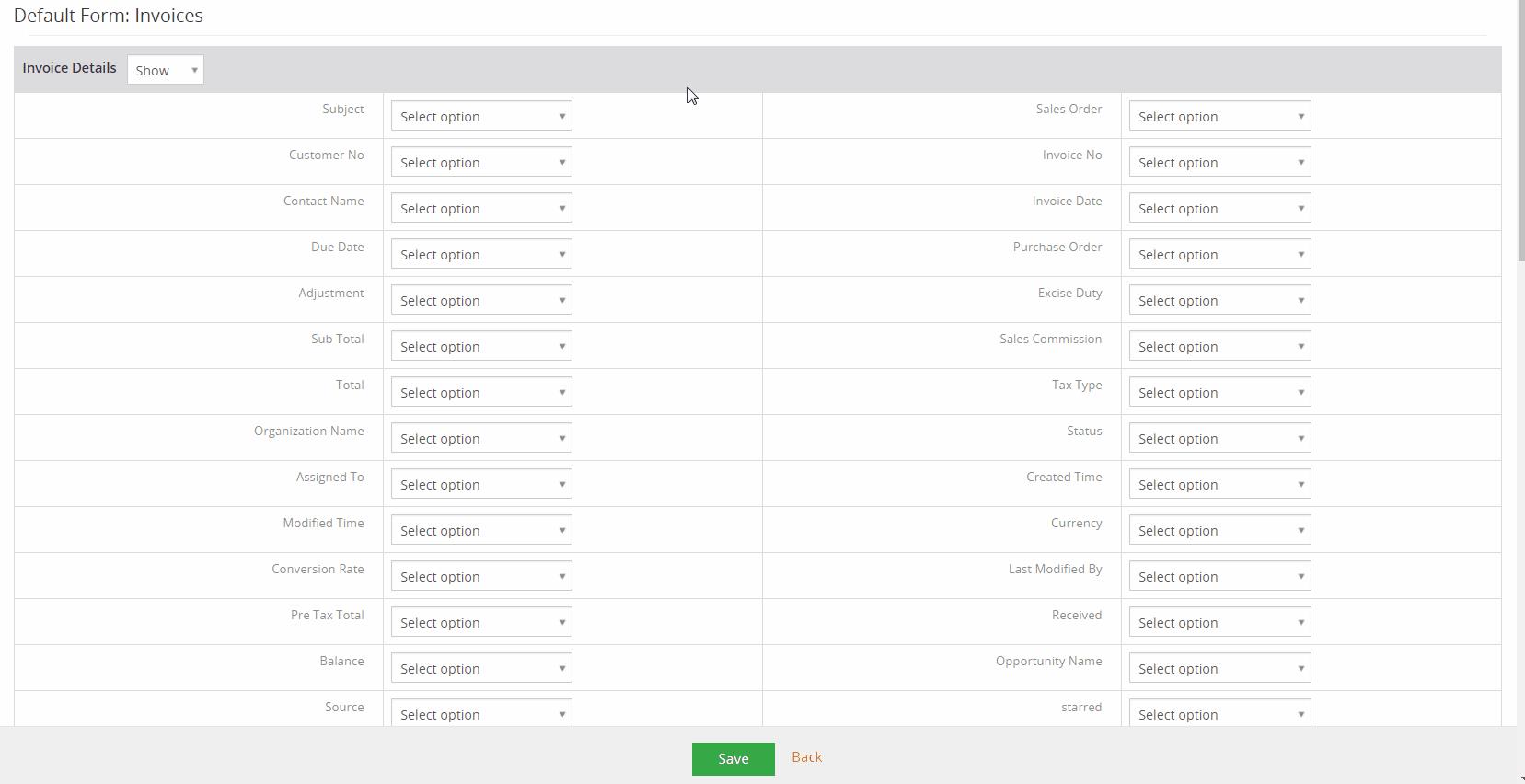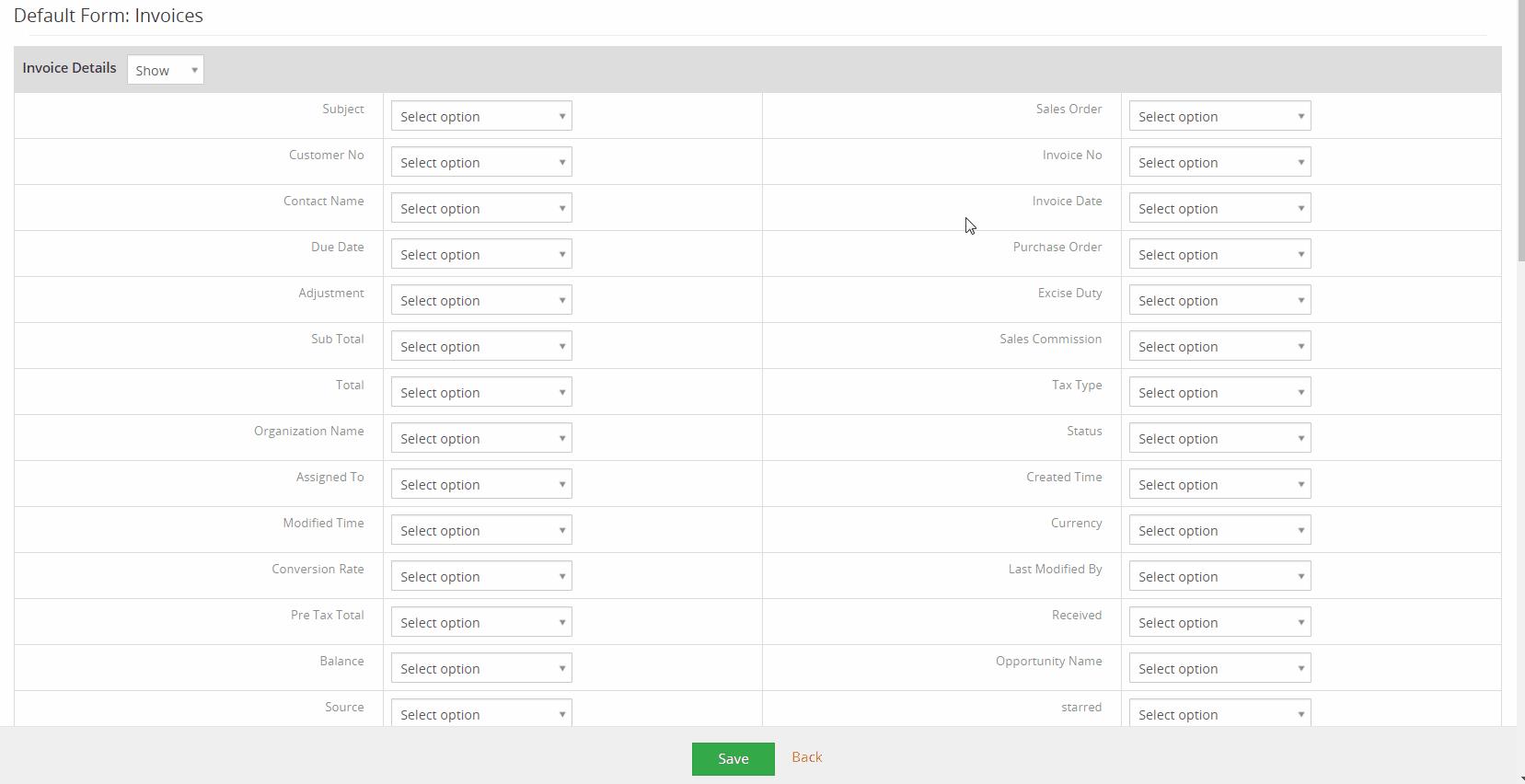 Ejecute los siguientes pasos para editar los campos de formulario predeterminados (como ejemplo, usamos el módulo Facturas):