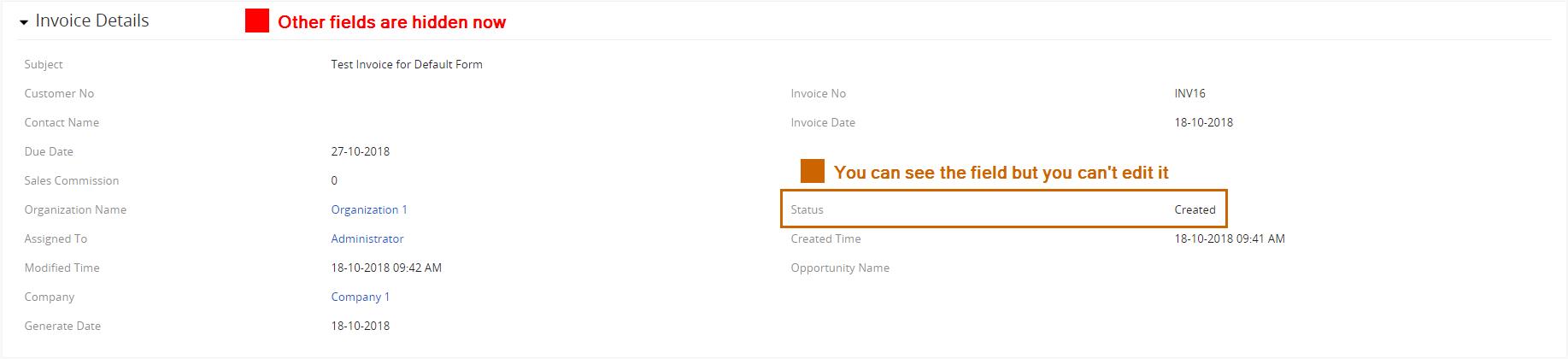 - En la siguiente pantalla, verá todos los bloques y campos del módulo que elija. Ahora puede ocultar o hacer que solo se lean los campos que desee. El proceso se muestra en la siguiente imagen: