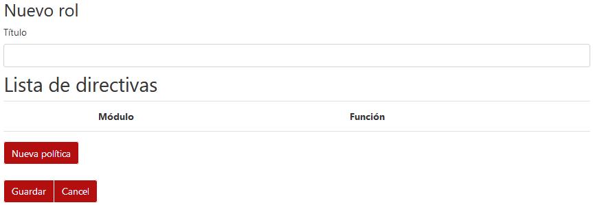 Si desea asignar una “nueva política”, simplemente se debe hacer clic en el botón Nueva política y se accederá a la ventana de asignación de funciones del módulo.