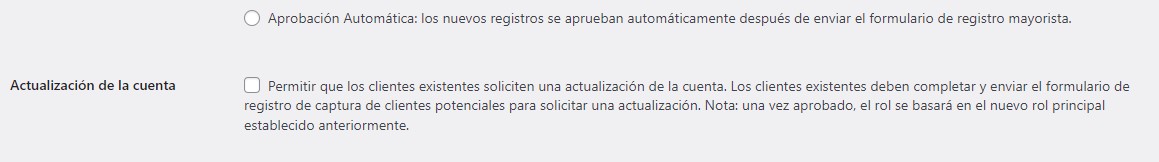 Permita una solicitud de actualización de cuenta para que un cliente regular se convierta en un cliente mayorista.