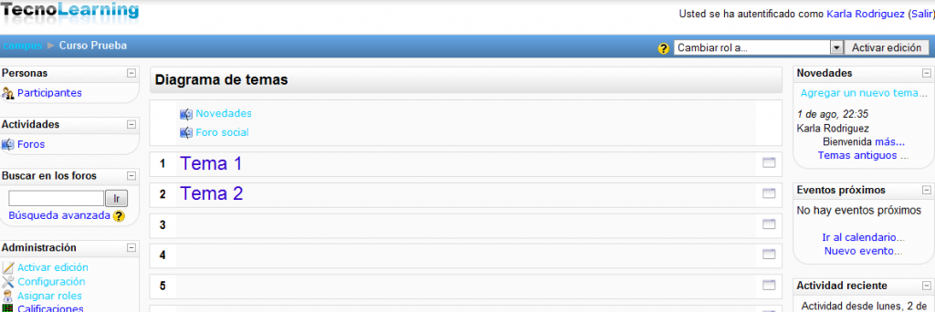 - Como alumno, profesor o administrador, ir a la página principal del curso.