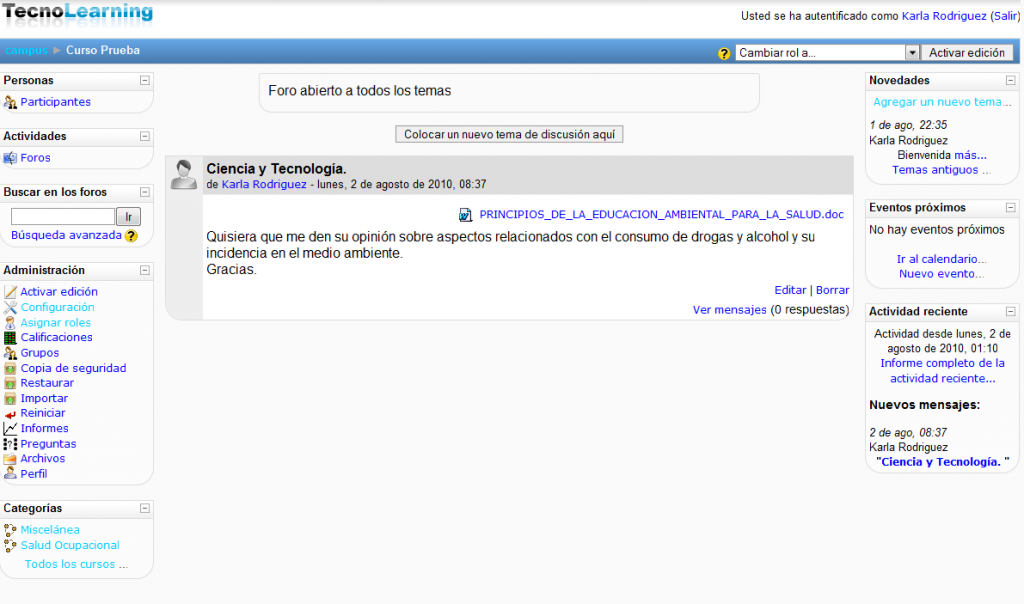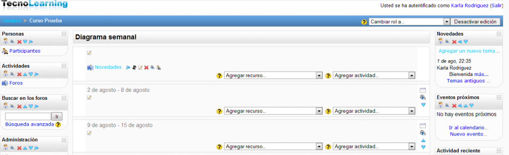 La primera caja es especial. Contiene el foro de Novedades de la asignatura y esta siempre visible. El resto se pueden ocultar o borrar.