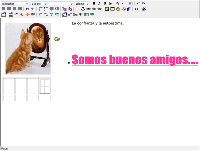 El editor de texto HTML: La mayoría de áreas para introducir texto (recursos, mensajes de los foros, diarios, etc.) que presenta TecnoLearning tienen embebido el editor HTML. Éste es un editor gráfico de texto HTML, es decir que funciona en el modo que se ha venido en denominar WYSIWYG (del inglés what you see is what you get, lo que se ve es lo que hay). Es el modo habitual de trabajo de los procesadores de textos de oficina más conocidos (MS-Word, OOo-Writer, Corel WordPerfect, AbiWord etc.).